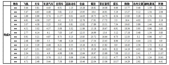 ◆國內(nèi)游客在本省的人均旅游消費(fèi)支出及消費(fèi)結(jié)構(gòu),包括:一日游游客的人均旅游消費(fèi)支出和非一日游(過夜)游客人均旅游消費(fèi)支出