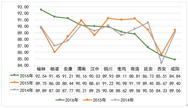 Ø 近三年陜西省各地市公眾氣象服務(wù)滿意度對比分析