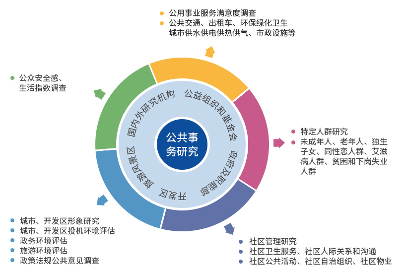 主要研究范圍包括教育、金融、公共衛(wèi)生、就業(yè)、交通、養(yǎng)老服務(wù)、社區(qū)發(fā)展等方面的調(diào)研咨詢項(xiàng)目。